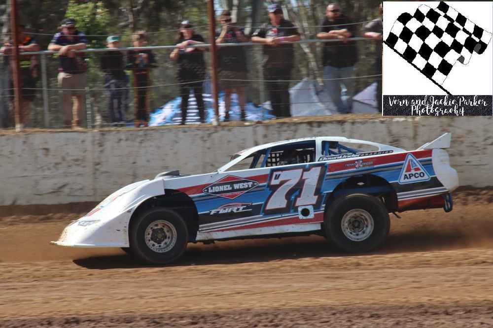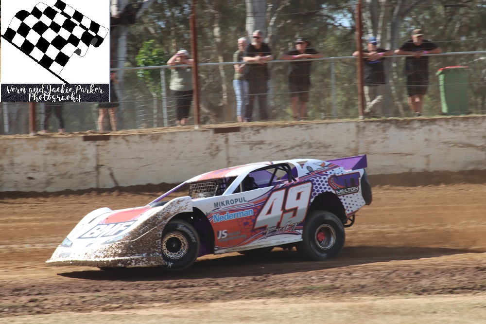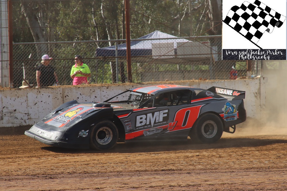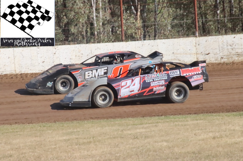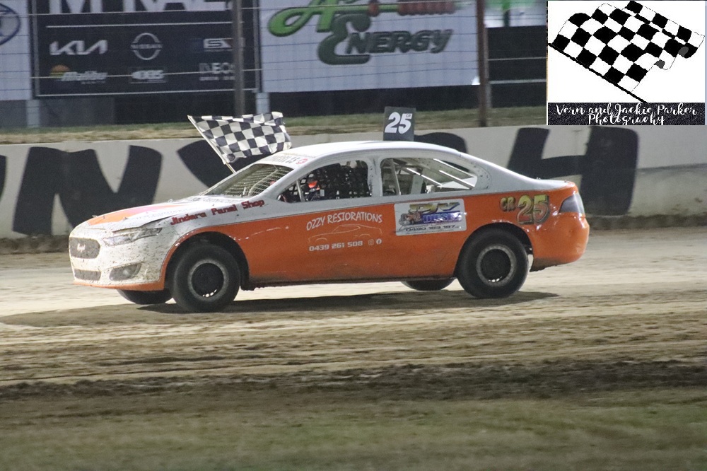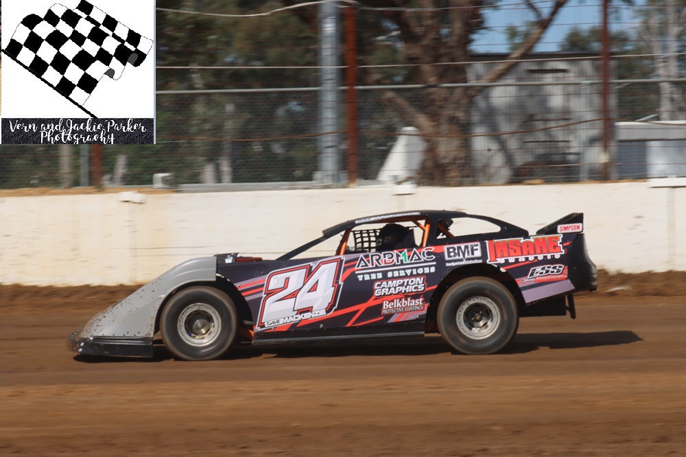 Danny McCarten a two-time state champion of the class then out gunned Shortis in heat number five whilst Tommy Schmetzer claimed the last win in heat racing. McCarten and Shortis started at the head of the field for the feature event with the Schmetzer’s behind them and Marty Bassett and Chant on the third row. McCarten claimed the lead from the start of the race with Shortis chasing and Ben Schmetzer third. The only real significant change in position was Schmetzer into second on lap eleven, only to lose that spot on the last lap with McCarten winning from Shortis, Ben Schmetzer, Tommy Schmetzer and Marty Bassett.